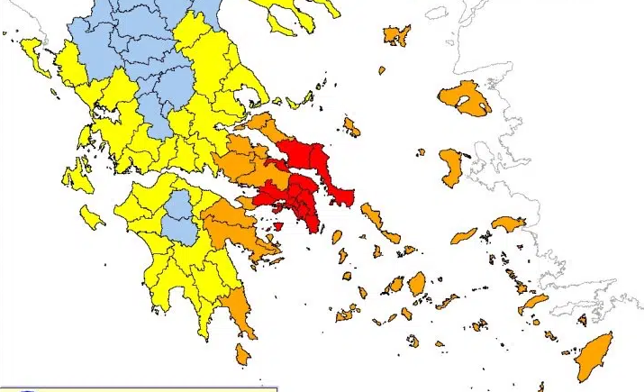 Ο κίνδυνος πυρκαγιάς είναι υψηλός (κατηγορία κινδύνου 3) σε περιοχές της Αρκαδίας και της Λακωνίας, καθώς και στη Μεσσηνία.