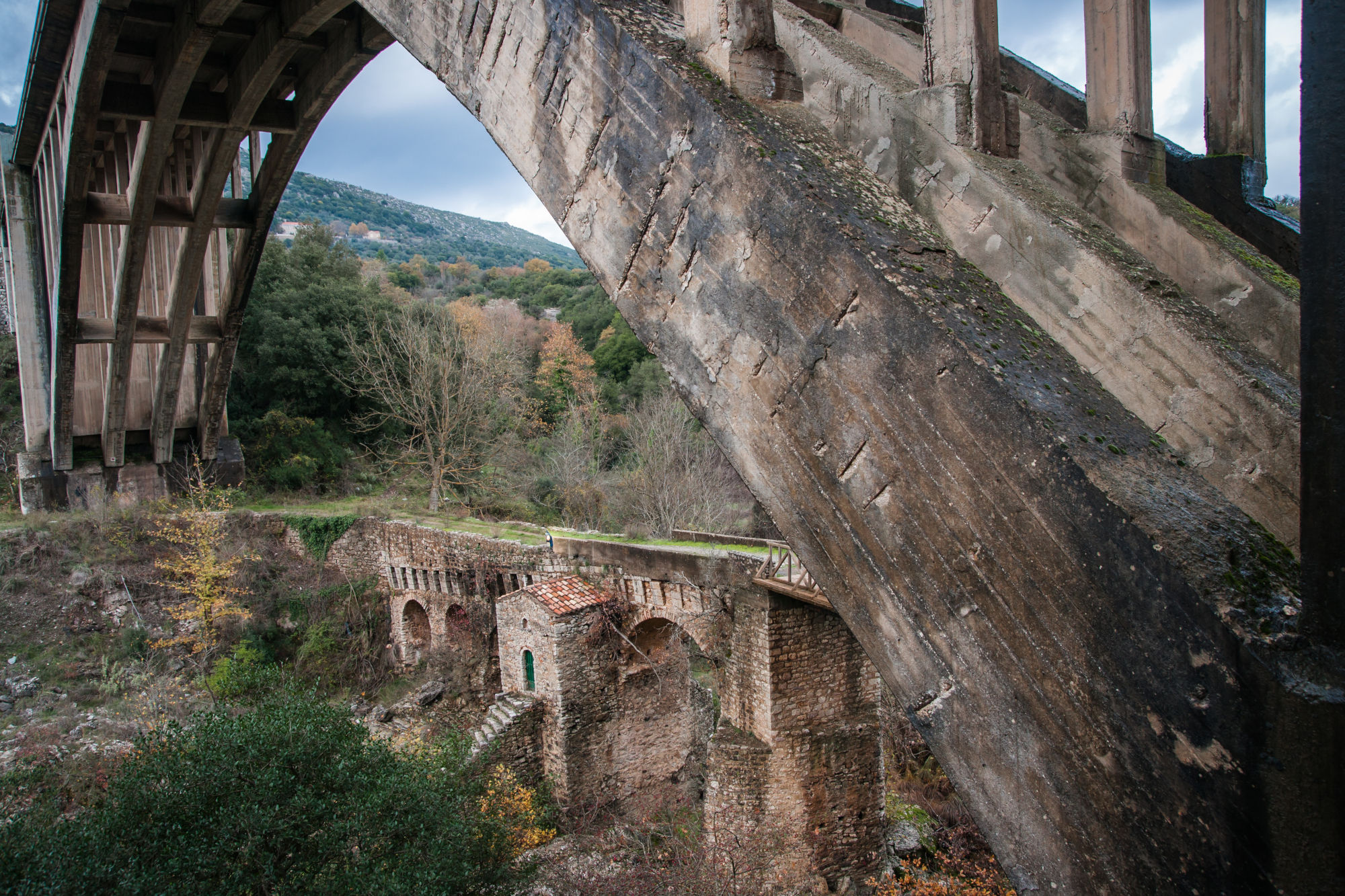 Μόλις τελειώσετε την περιήγηση εντός των πλαισίων του χωριού είναι η ώρα να ανακαλύψετε της ομορφιές γύρω από αυτό. Περπατήστε στην κάτω πλευρά του χωριού, στο δρόμο προς τη Μεγαλόπολη για να θαυμάσετε το φράγκικο πέτρινο τοξωτό γεφύρι του Αλφειού του 13ου αι. που συνέδεε την τότε καστροπολιτεία της Καρύταινας με τη Μεσσηνία. Ενσωματωμένο στη γέφυρα υπάρχει το μικρό, μεταγενέστερο, βυζαντινό πέτρινο εκκλησάκι της Γέννησης της Θεοτόκου ενώ ακριβώς από πάνω βρίσκεται η πολύ μεγαλύτερη σύγχρονη γέφυρα -από την οποία μπορείτε να κάνετε rappel κατεβαίνοντας μέχρι τη βάση του παλιού γεφυριού μια ανάσα από τα δροσερά νερά του Αλφειού– στην περιοχή λειτουργούσαν πολλοί νερόμυλοι που σήμερα σώζονται μόνο τα ερείπιά τους. Οι παλιότεροι μπορεί να θυμούνται την γέφυρα αποτυπωμένη στο πεντοχίλιαρο, ναι αυτό από την εποχή των δραχμών. Άλλο ένα ιδιαίτερο γεφύρι είναι αυτό του Κούκου, θα το βρείτε στο πιο στενό σημείο του Αλφειού στη θέση «Τρία Αλώνια» Βλαχοράπτη που συνέδεε την επαρχία της Ολυμπίας με τα χωριά της Γορτυνίας, το γεφύρι έχει ύψος 34 μ., μήκος 20 μ. και πλάτος 4 μ. και είναι πραγματικά εντυπωσιακό το πώς χτίστηκε σε αυτό το ύψος.