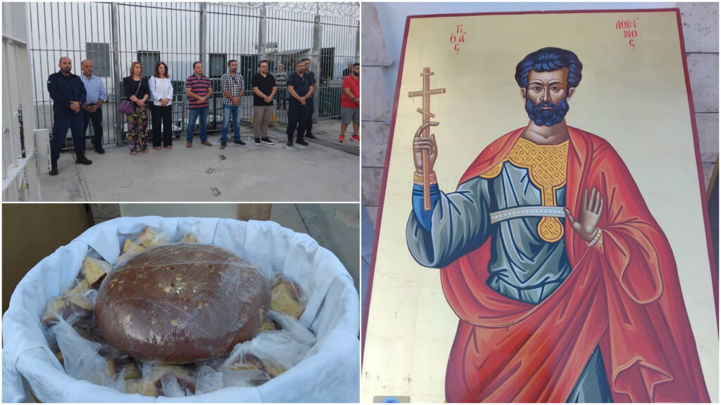 Στο σωφρονιστικό κατάστημα Ναυπλίου στις 15 Οκτωβρίου πραγματοποιήθηκε εσπερινός με αρτοκλασία που προσέφεραν οι Σύλλογοι των υπαλλήλων εσωτερικής – εξωτερικής φύλαξης του καταστήματος, προς τιμή της εορτής του προστάτη των Σωφρονιστικών Υπαλλήλων Αγίου Λογγίνου.