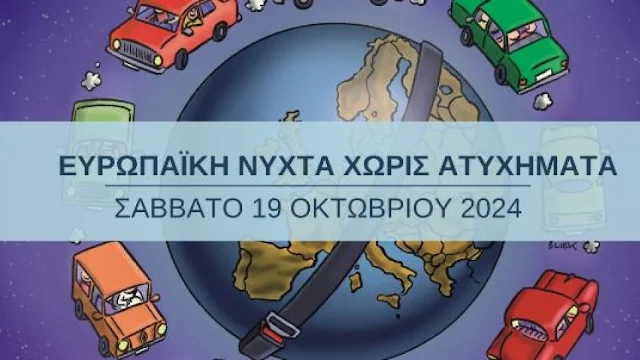To Ινστιτούτο Οδικής Ασφάλειας (Ι.Ο.ΑΣ.) «Πάνος Μυλωνάς» συνεχίζει δυναμικά τις δράσεις ενεργοποίησης και ευαισθητοποίησης των πολιτών για «έναν κόσμο χωρίς τροχαία δυστυχήματα» διοργανώνει για 18η χρονιά, το Σάββατο 19 Οκτωβρίου 2024, την 18η «Ευρωπαϊκή Νύχτα χωρίς Ατυχήματα» σε μεγάλες πόλεις στην Ελλάδα.