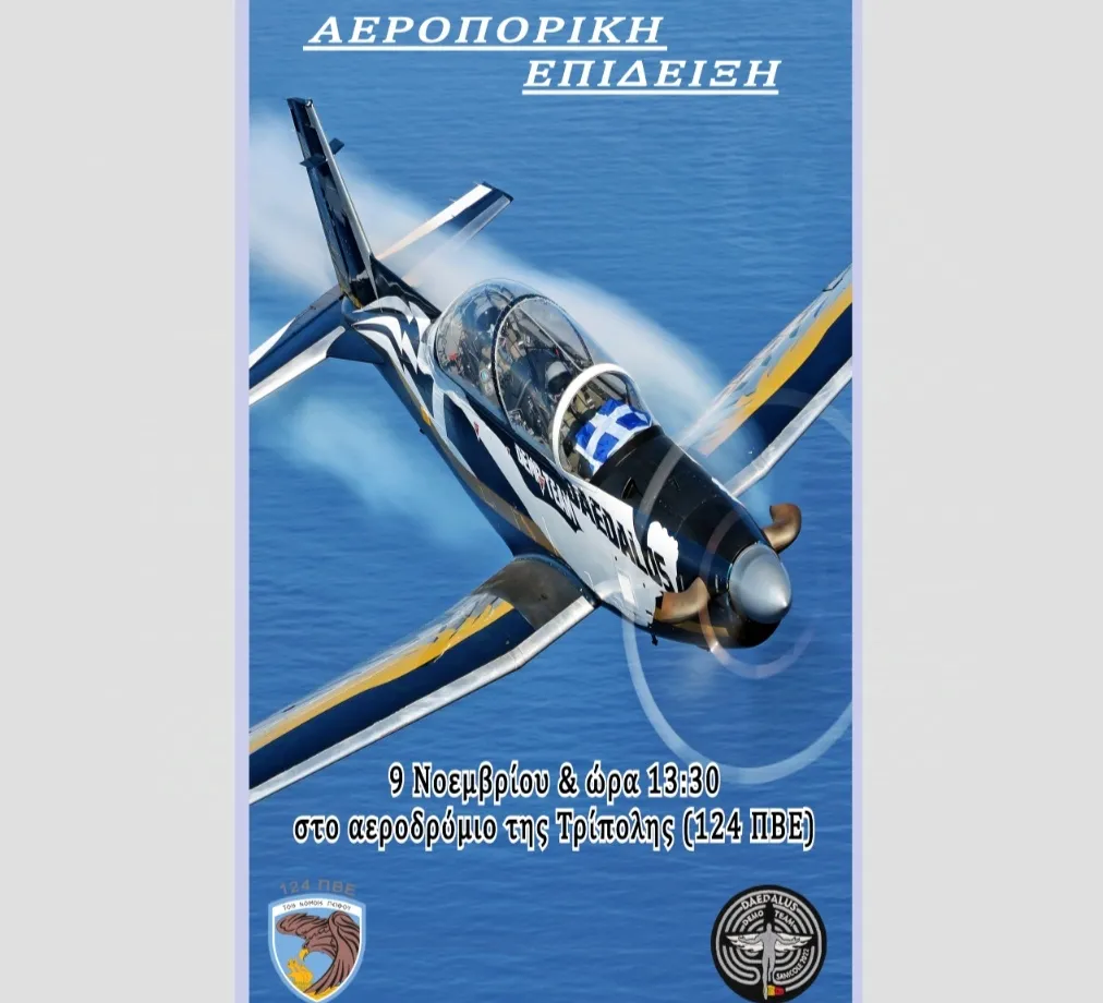 Στο πλαίσιο των εορταστικών εκδηλώσεων, θα διεξαχθεί Αεροπορική Επίδειξη της ομάδας HAF T-6A “Daedalus” Demo Team, το Σάββατο 9 Νοεμβρίου και ώρα 13:30 στο αεροδρόμιο της Τρίπολης (124ΠΒΕ).